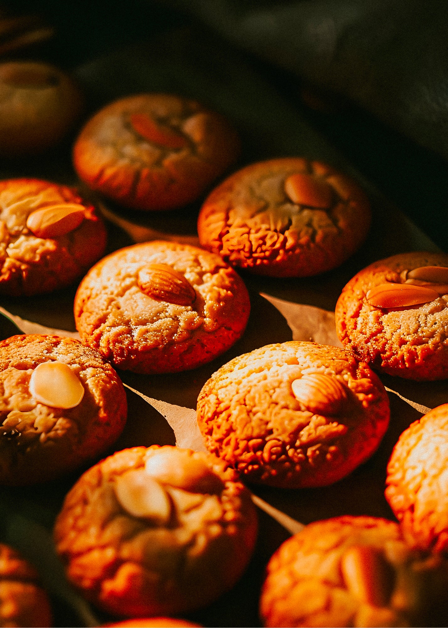 A golden light spills across the sidewalk as you follow the trail of a sweet, nutty aroma drifting through the air. It leads you to the door of a charming little bakery, tucked quietly between bookshops and flower stands. As you step inside, the world seems to soften—the hum of ovens, the warmth of sugar in the air, and the scent of toasted almonds curling around you like a familiar hug.