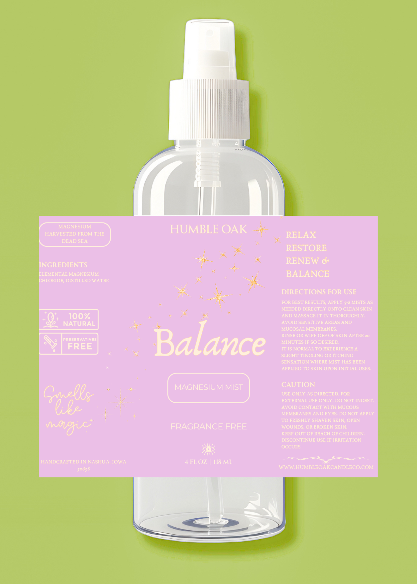 Our Balance Magnesium Oil Spray is simple, effective, and free of any unnecessary additives, making it a clean, natural addition to your self-care routine.