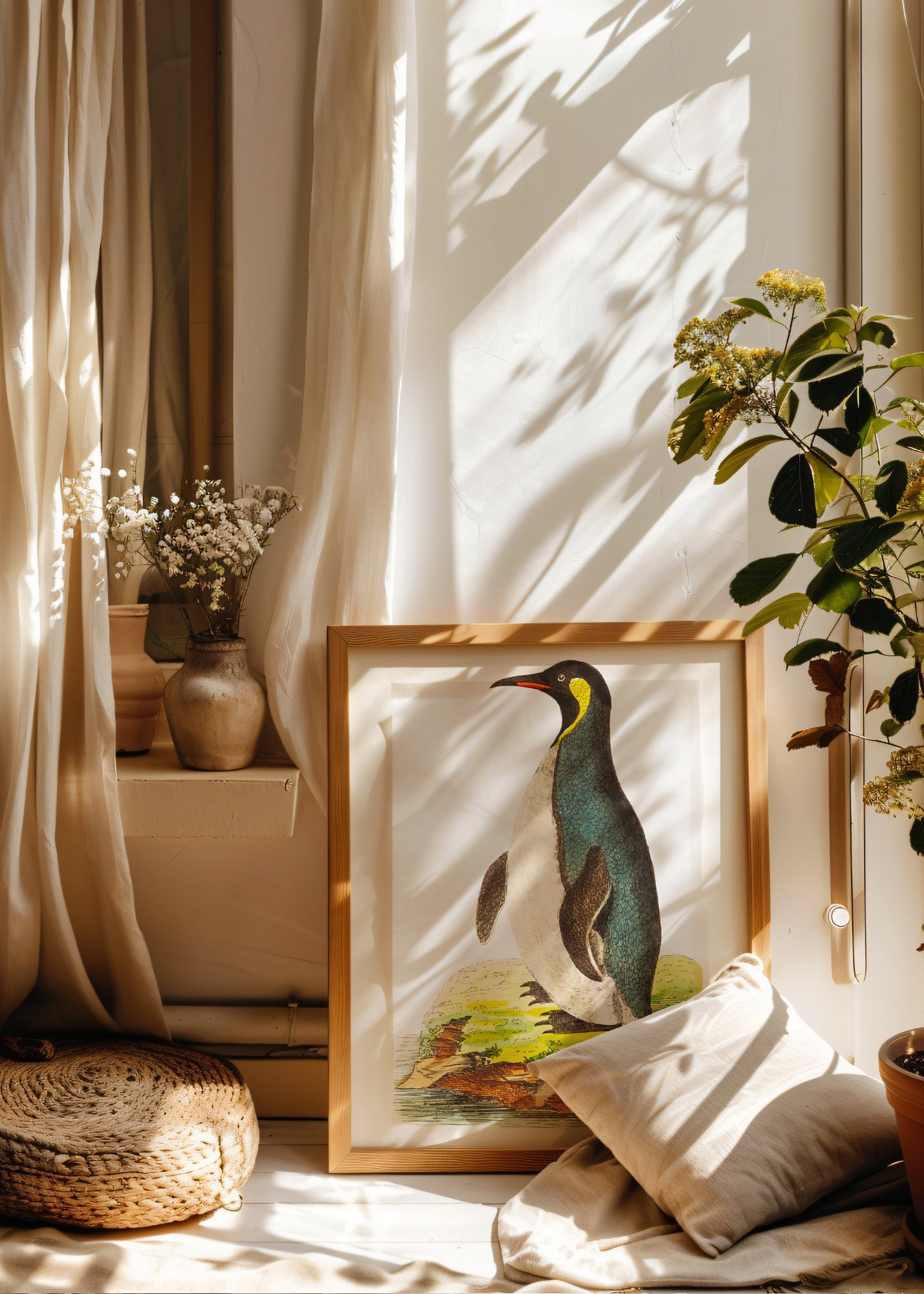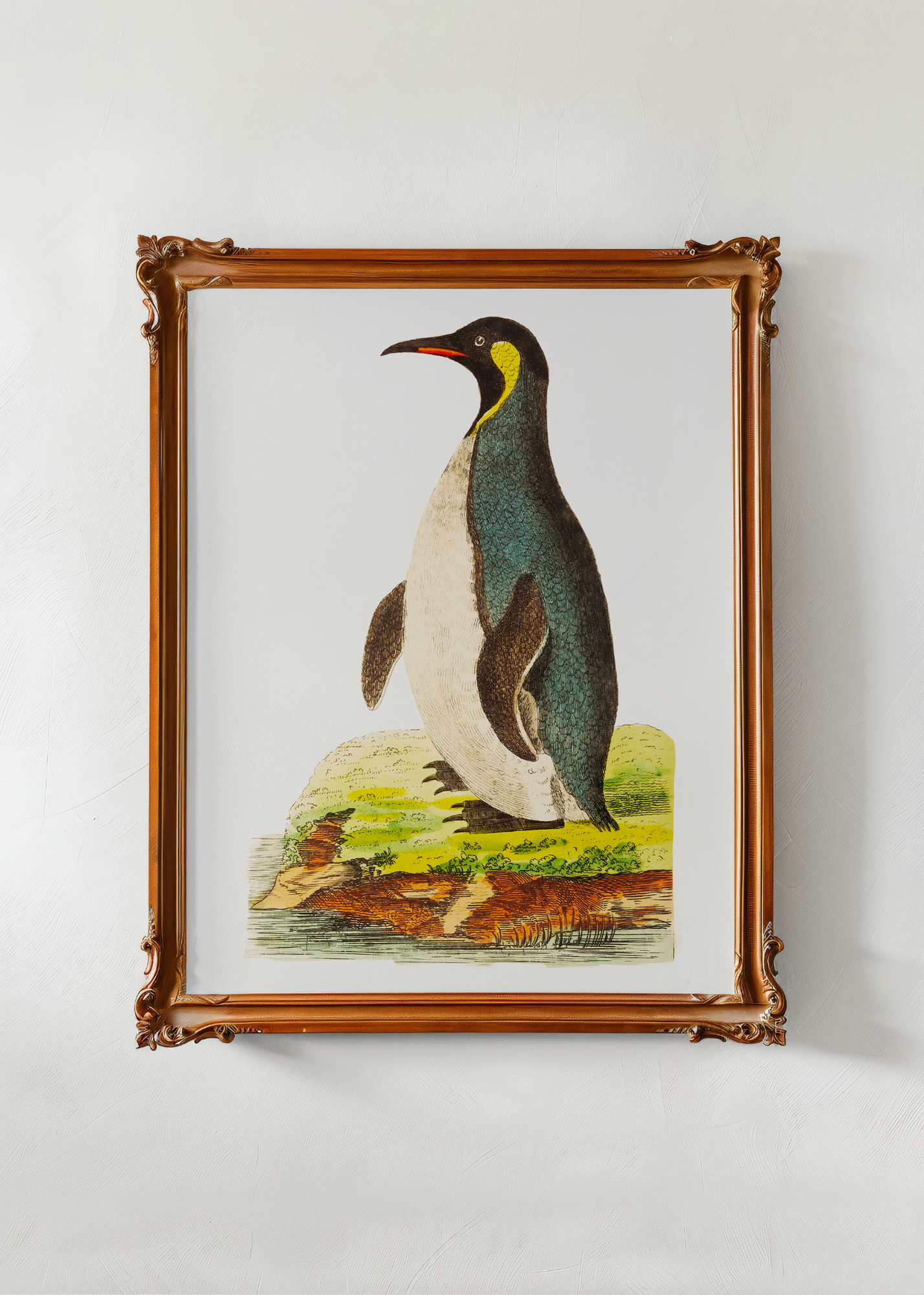 In this vintage naturalist’s study, the penguin becomes more than a subject of science; it is a symbol of endurance, of graceful adaptation. Each feather seems to carry the chill of ocean spray, and the warmth of hidden colonies nestled among rocky cliffs. The soft shading and fine detailing invite the viewer into an intimate moment—a pause between the rhythms of migration and rest.