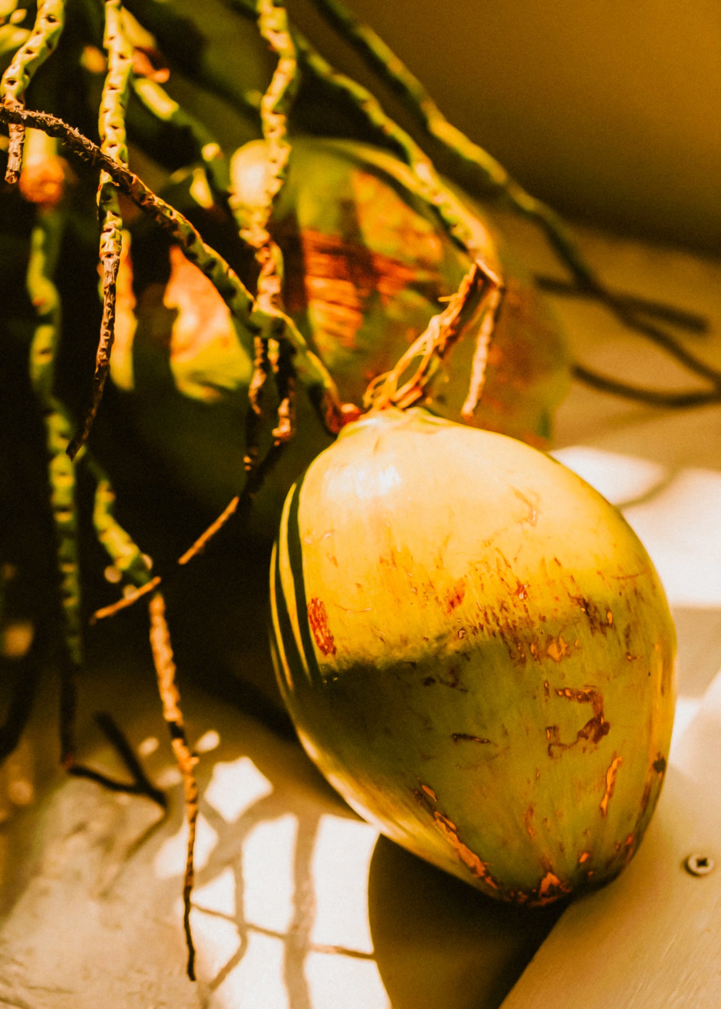 The sun hangs low over the horizon, casting golden ribbons across a quiet shoreline where the air is thick with warmth and the slow rhythm of waves. You find yourself wandering through a secluded grove, barefoot in the soft sand, the scent of paradise unfolding around you like silk.