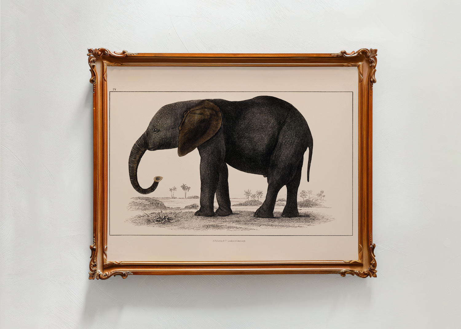 Elephant— With deliberate strokes and shaded patience, the elephant emerges—an ancient presence rendered in charcoal grace. Its massive form is softened by gentle light, each wrinkle etched like the rings of a fallen tree, telling stories of time, endurance, and quiet memory. The tusks curve like moonlit scythes, proud yet worn, and in the eyes, there is something more than intelligence—there is remembrance.