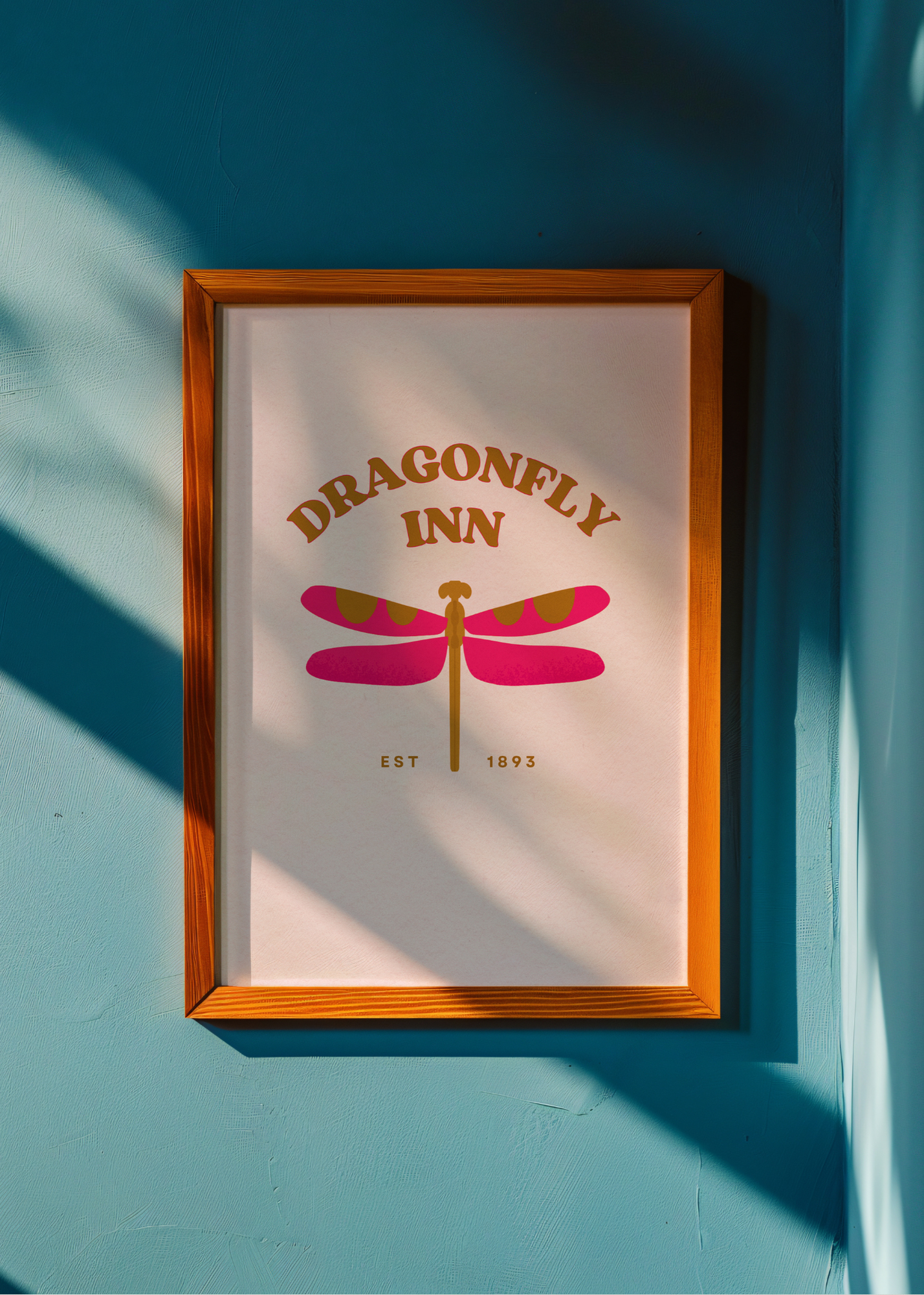 Dragonfly Inn— Soft and sentimental, this muted rose-colored print celebrates the whimsy and warmth of the Dragonfly Inn. A sweet dragonfly with wings in vibrant pink and golden yellow rests at the center, like something out of a dream—or maybe just the inn’s lush garden. Above it, in cheerful goldenrod lettering, “Dragonfly Inn” twirls like laughter echoing down the hallway of a fully booked weekend. Est. 1893 anchors the print, a gentle reminder that this space has always held stories. Perfect for fans of flannel, flowers, and the kind of cozy ambition that built a place that feels like home out of an old inn and a lot of love.