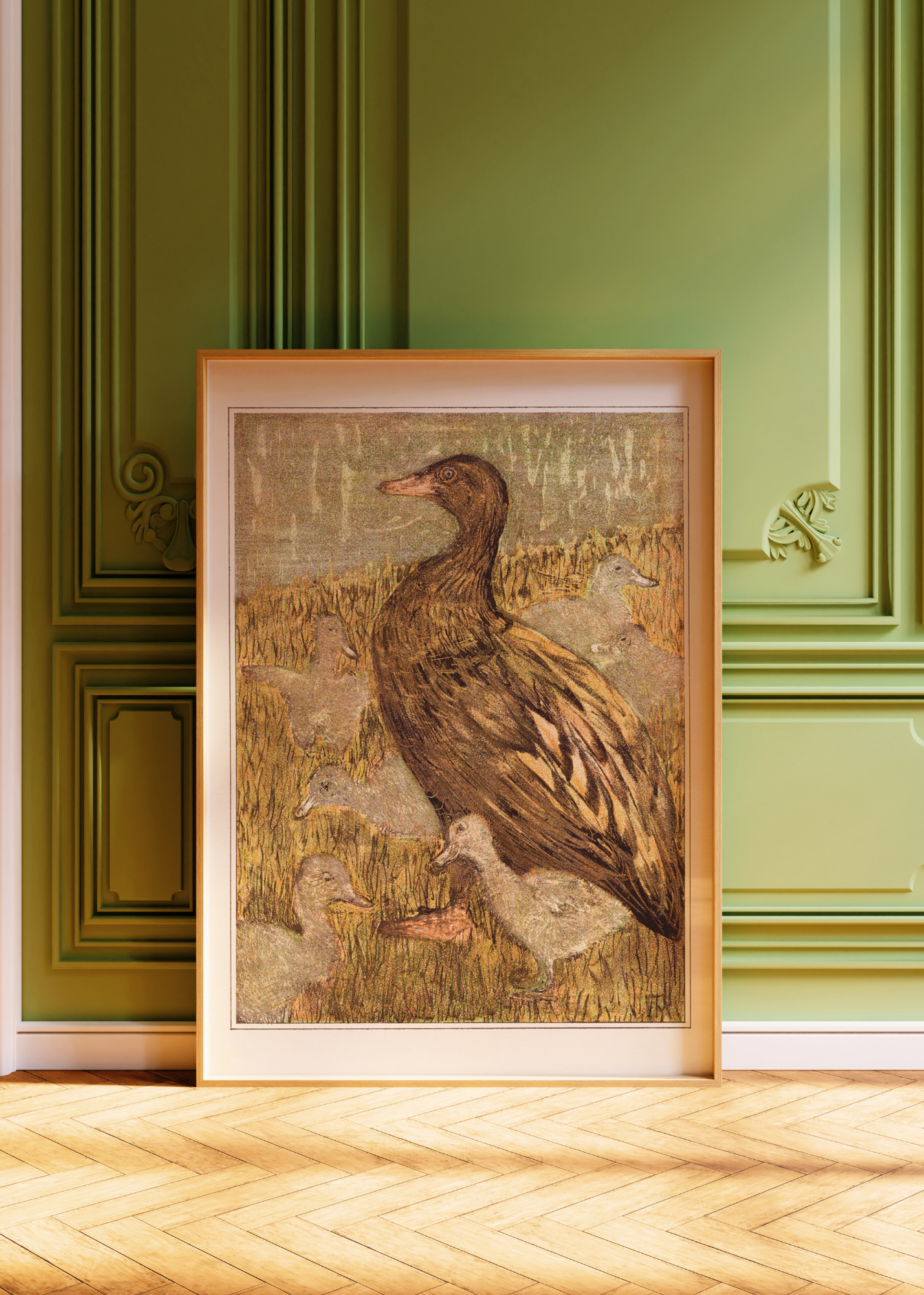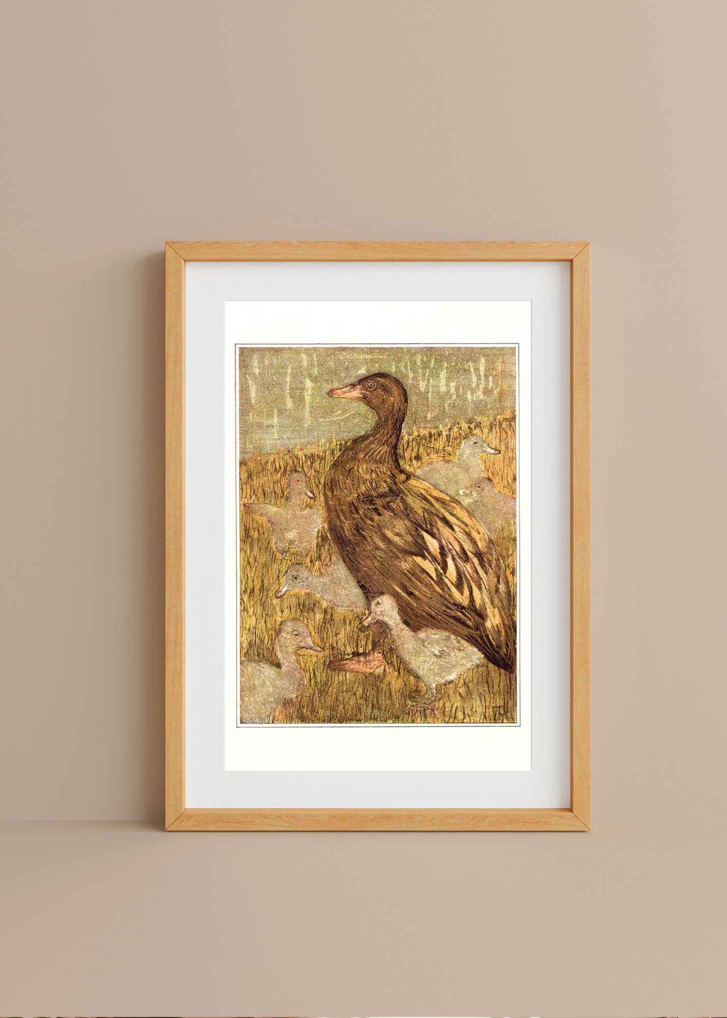 Duck with Chicks at the Waterfront— Digital Art Print