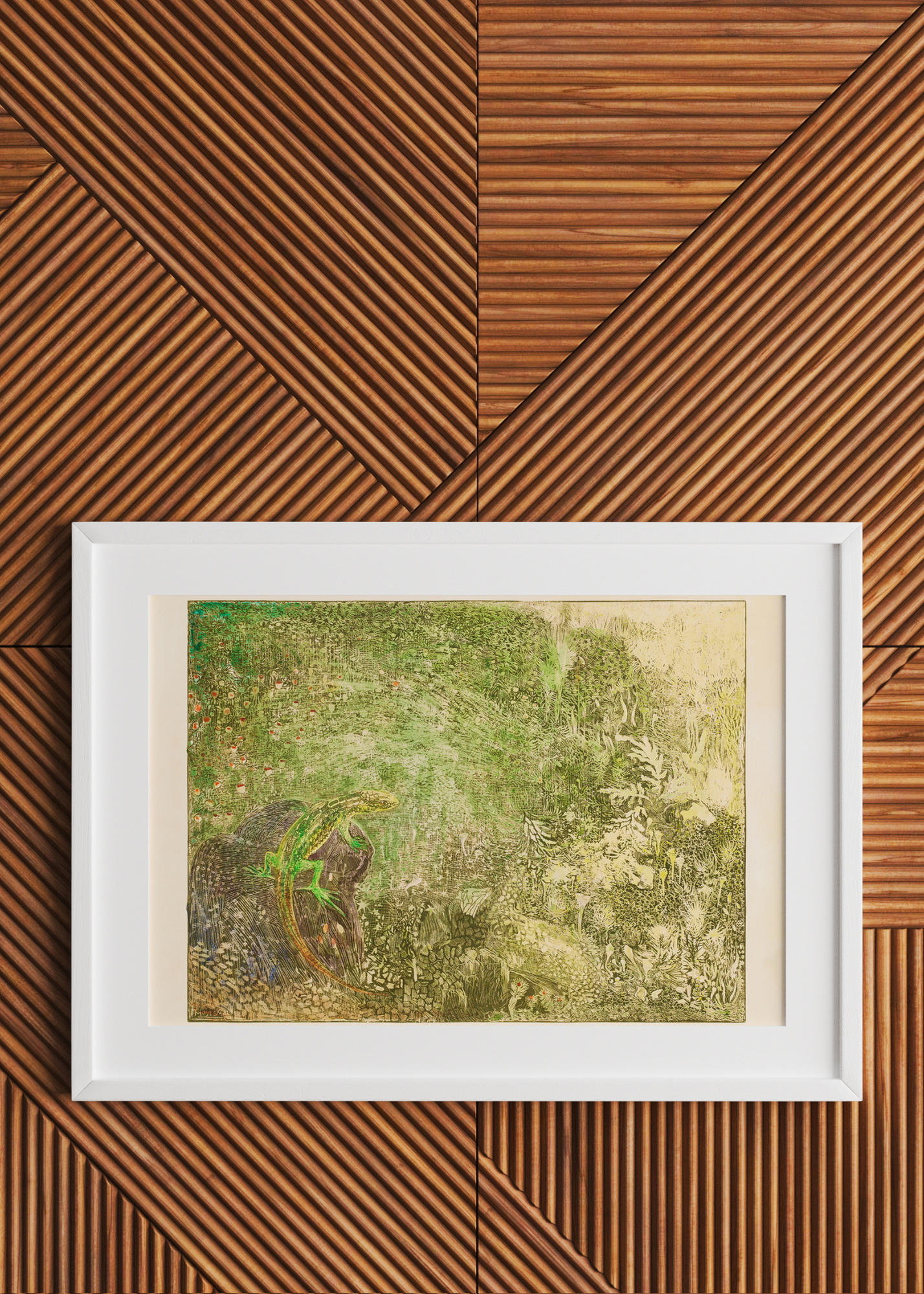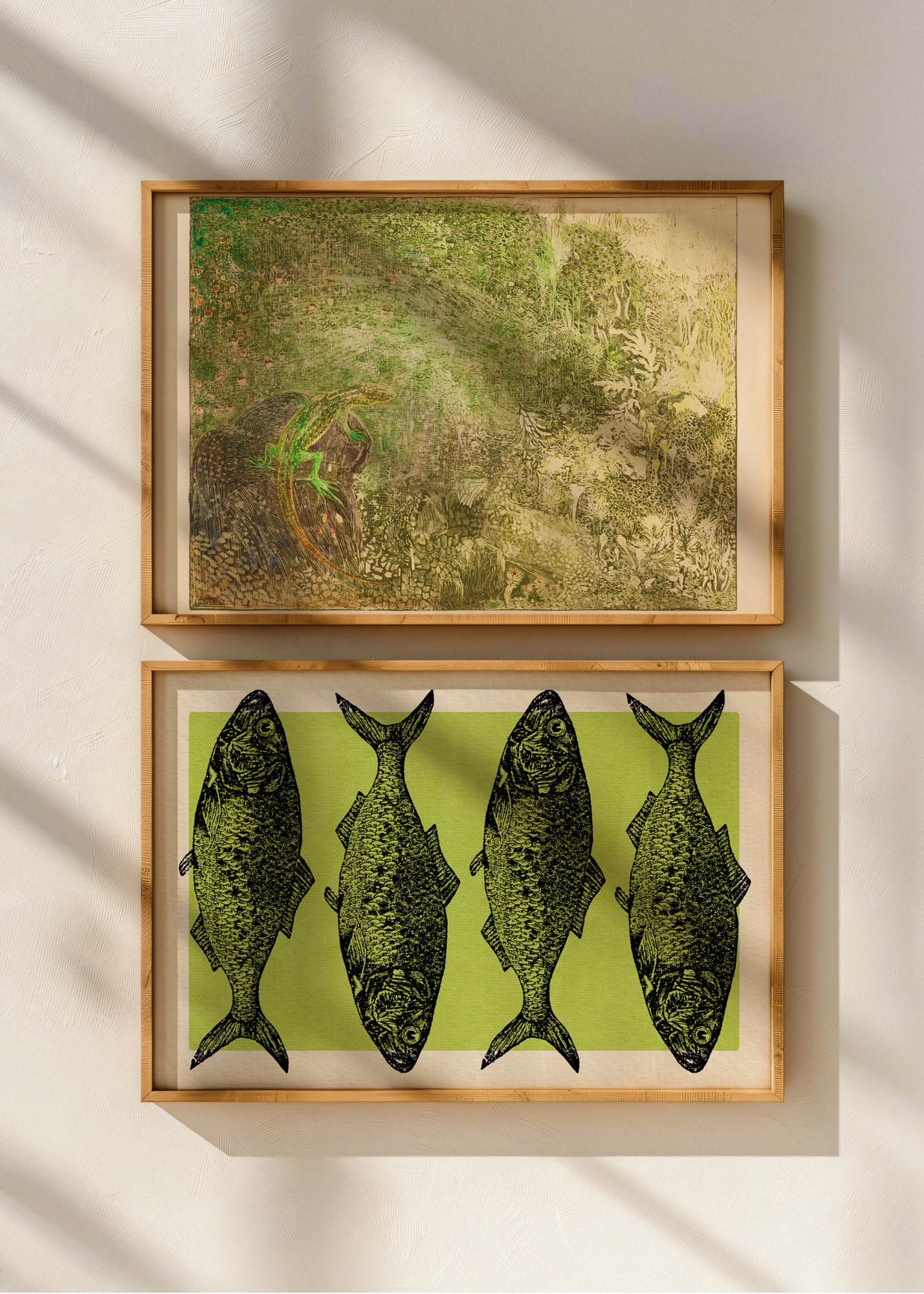 Lizard on a Stone— Quiet as a shadow, the lizard rests—still and sun-warmed atop a weathered stone. In Lizard on a Stone, Theo Van Hoytema captures a fleeting, almost meditative moment from the natural world. With his signature softness and gentle detailing, he invites us to see the grace in the ordinary: the curve of a tail, the texture of earth, the hush of stillness in the sun. A humble scene, rendered with reverence.