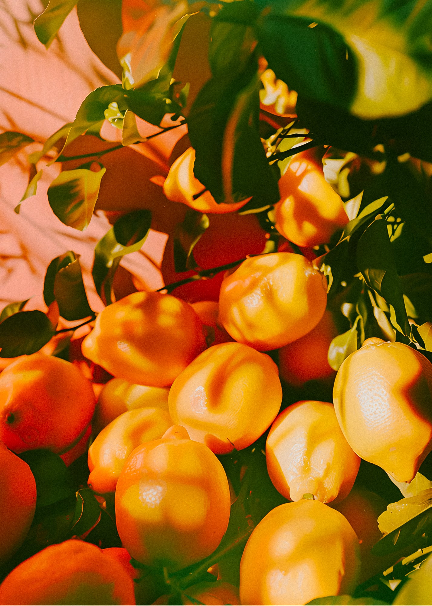 Sunlight filters gently through the leaves, casting golden patterns on the path as you wander through a citrus orchard in full bloom. The branches are heavy with bright, ripe Meyer lemons, their yellow skin glowing like little suns against a backdrop of green. You pause to pluck one from a low-hanging branch, and as you do, the air fills with a crisp, tangy burst of zest—freshly cut, clean, and full of life.