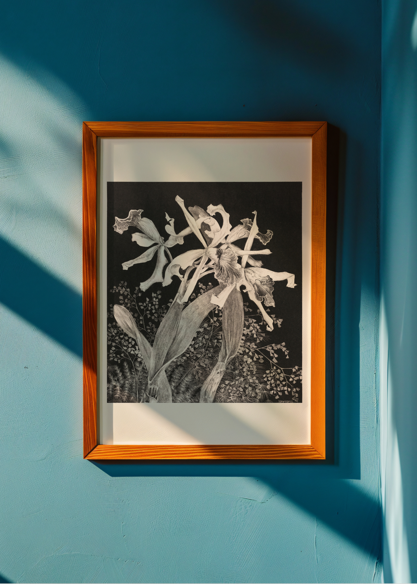Orchids— Delicate and otherworldly, Orchids by Theo Van Hoytema captures the quiet splendor of these rare blooms with gentle precision. Each petal seems to hover on the edge of stillness, their shapes unfolding like whispered secrets. Rendered with a soft gaze and restrained elegance, the composition invites you to pause—to notice the balance of grace and mystery that lives within the natural world. It is a moment preserved in bloom: tender, ephemeral, and full of breath.