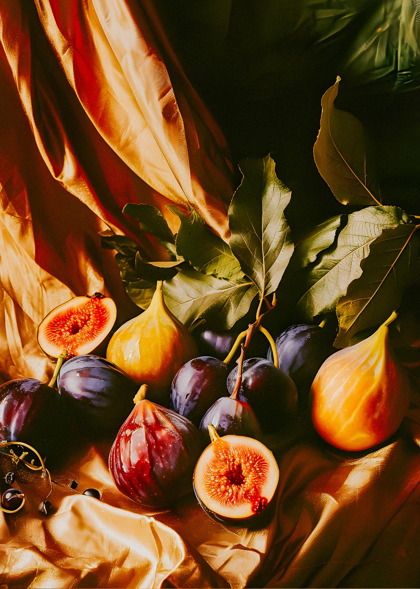 The path winds through an orchard bathed in late afternoon light, where branches stretch low with the weight of the season’s final fruit. Leaves tumble in the breeze like slow-dancing embers, and the air carries a fragrant blend of crispness and warmth—lemon peel and ginger crackling like a spark, bright and alive against the earthy richness of ripe fig and black plum.