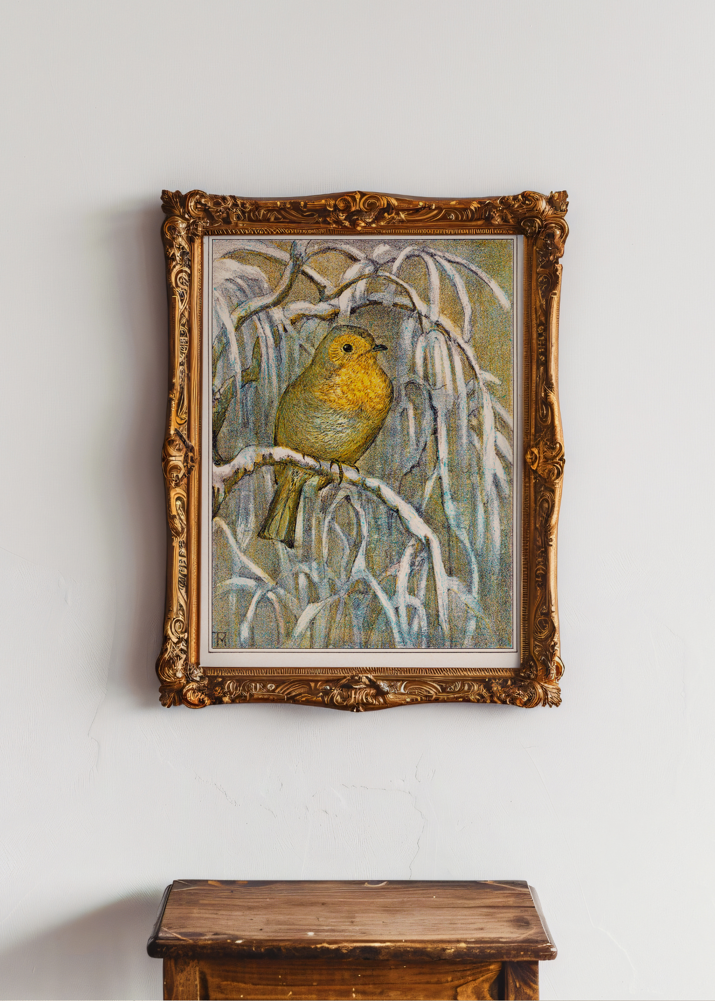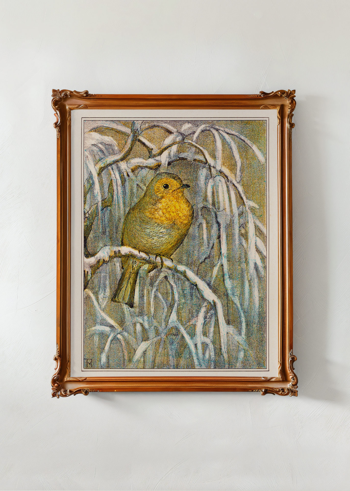 Robin on a Snowy Tree Branch— Digital Art Print