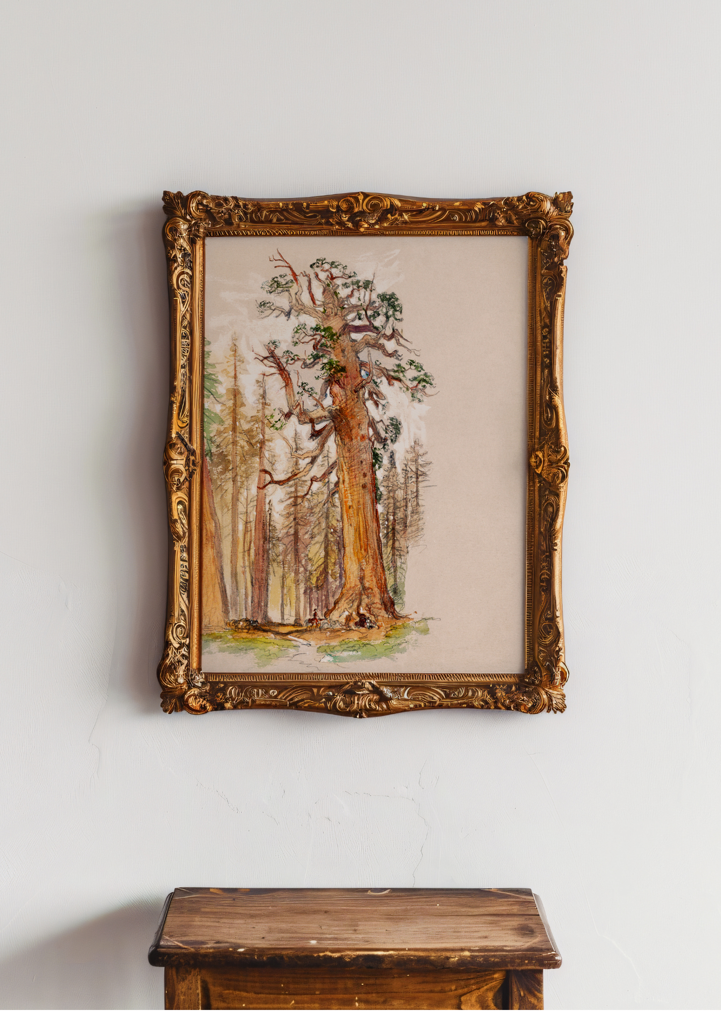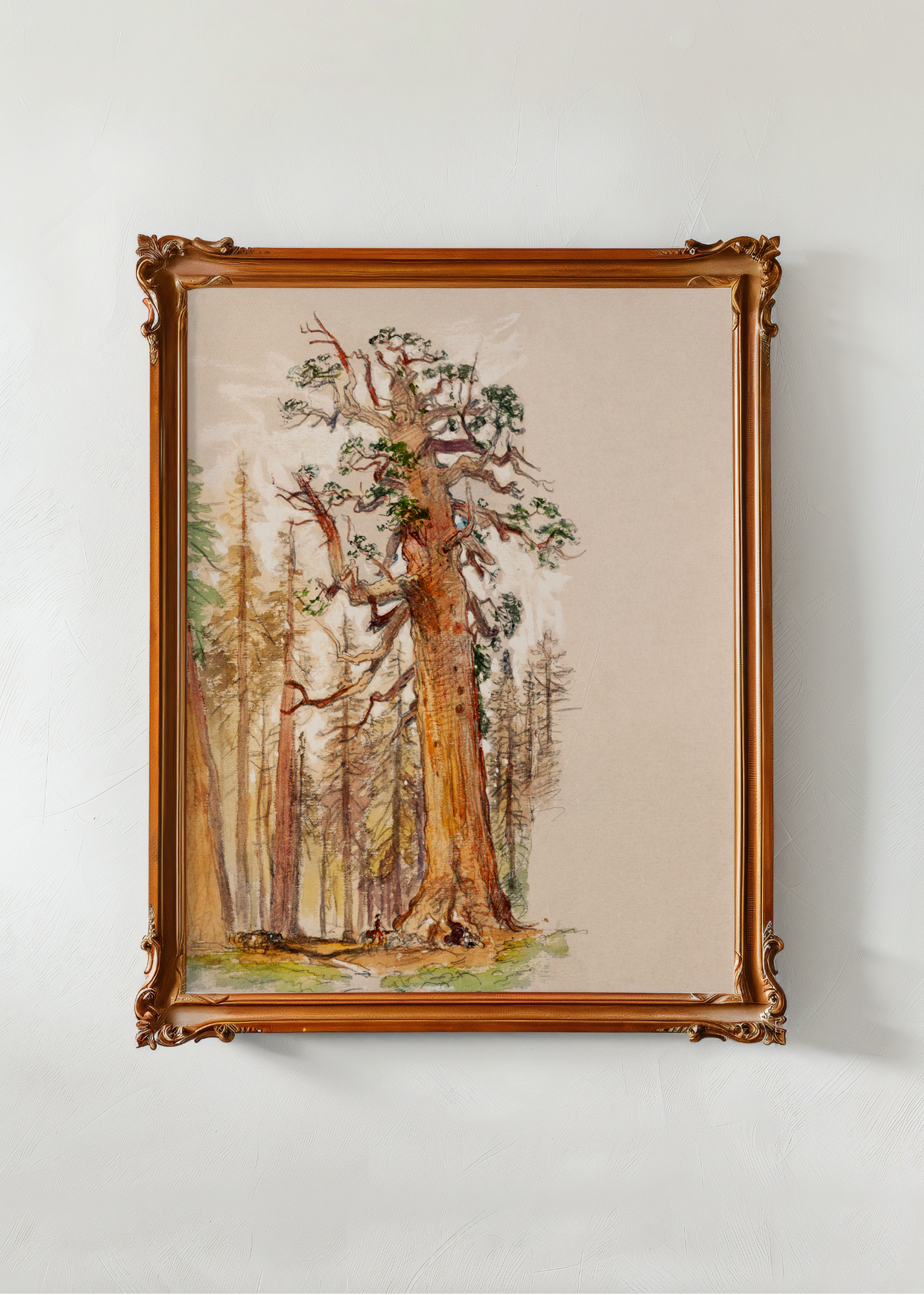 Oak and Evergreen— In Oak and Evergreen, Samuel Colman renders a tranquil meeting of strength and stillness—ancient branches stretching wide beneath a soft, watchful sky. The sturdy oak and quiet evergreen stand in quiet dialogue, rooted yet reaching, their forms woven into the hush of the natural world. With gentle tones and meditative depth, this piece invites a moment of stillness, like stepping into a hushed forest at the edge of thought.