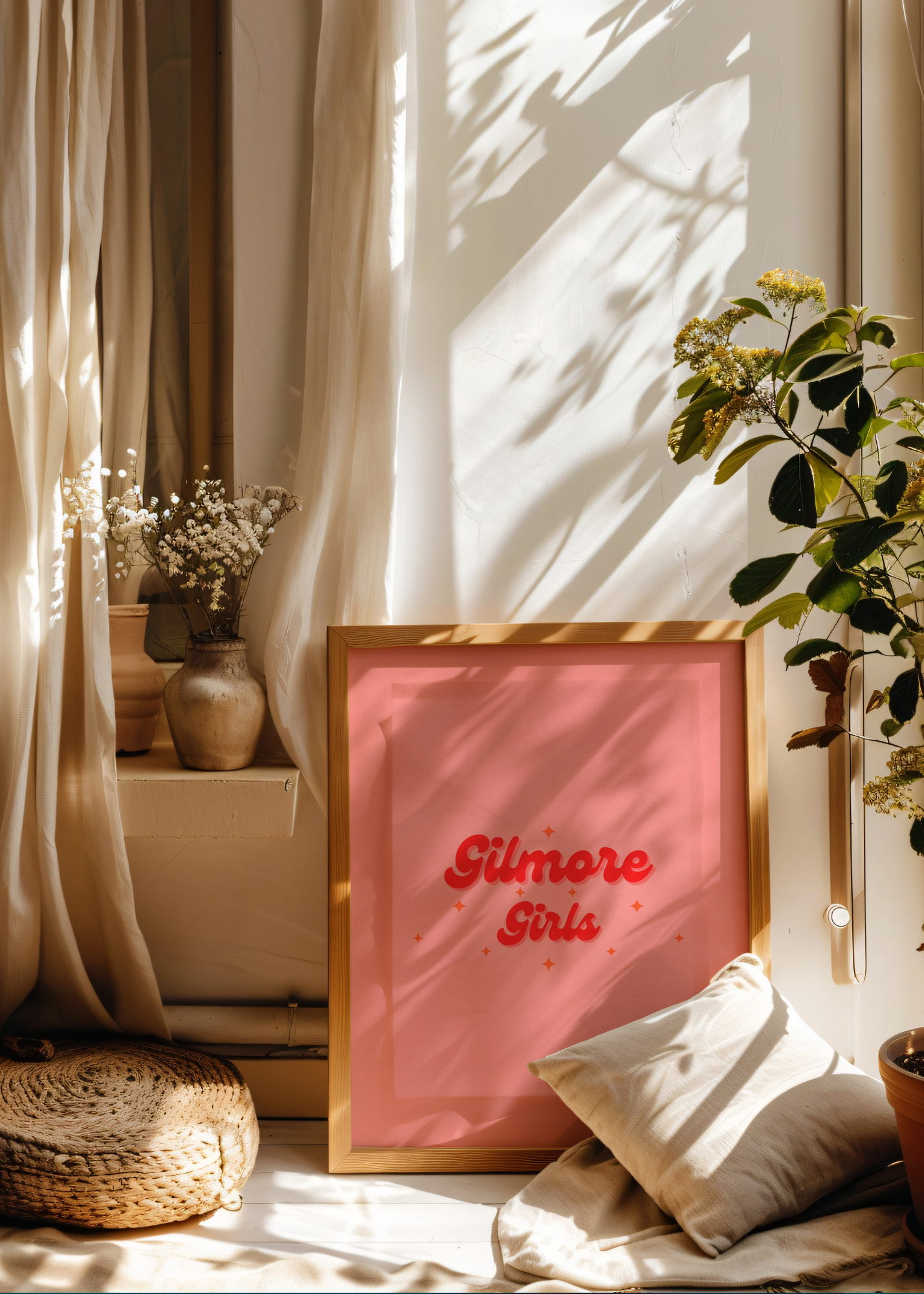 Gilmore Girls, Red— A playful nod to a beloved world, this original piece brings the spirit of Gilmore Girls to life in a burst of color and charm. Set against a bright, cheerful backdrop, the iconic words shine in a fun, modern font—simple, bold, and full of heart. Whether it evokes cozy nights, fast-talking scenes, or small-town magic, this design offers a vibrant tribute to the stories we return to again and again. Available in a variety of joyful hues to suit every mood.