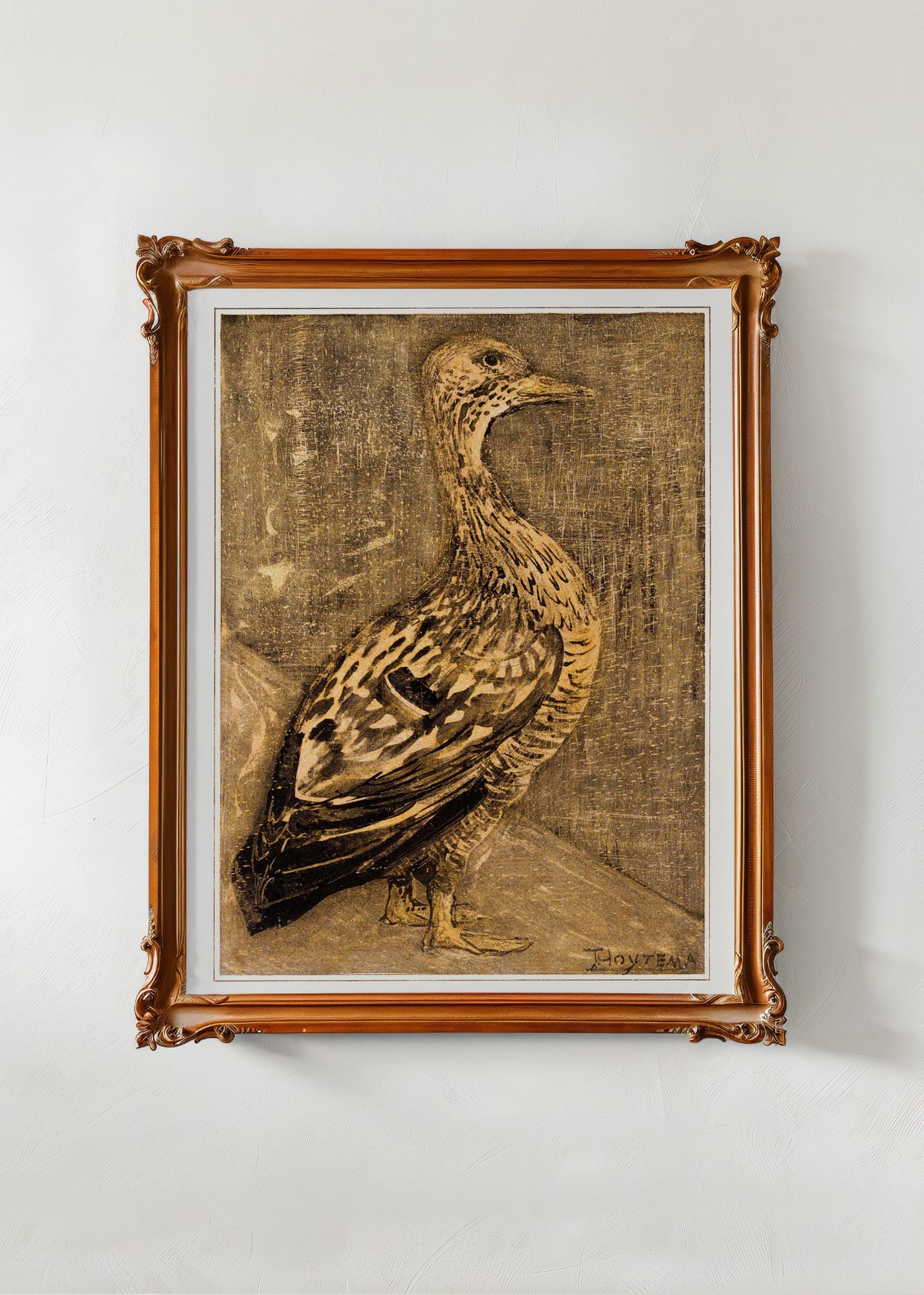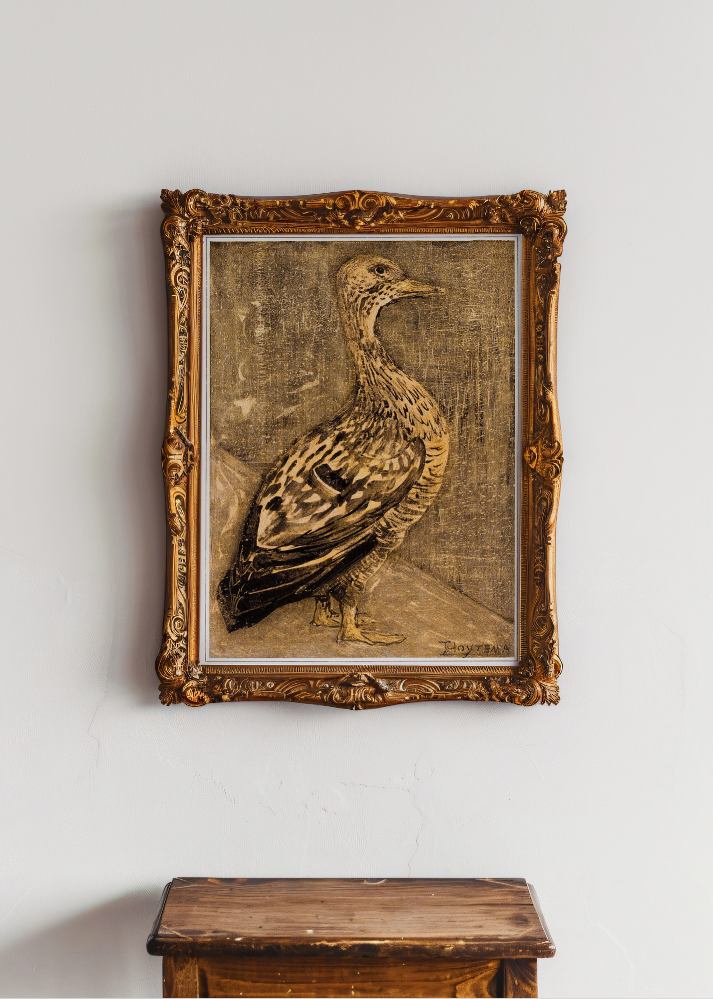 Standing Duck— With a calm posture and unhurried air, the duck stands as if caught in gentle thought. In Standing Duck, Theo Van Hoytema captures more than a bird—he captures a quiet moment of stillness in the world. Feathers subtly rendered, gaze soft yet alert, the piece invites the viewer to pause, to notice the small and the serene. A delicate glimpse into the tender rhythms of nature.