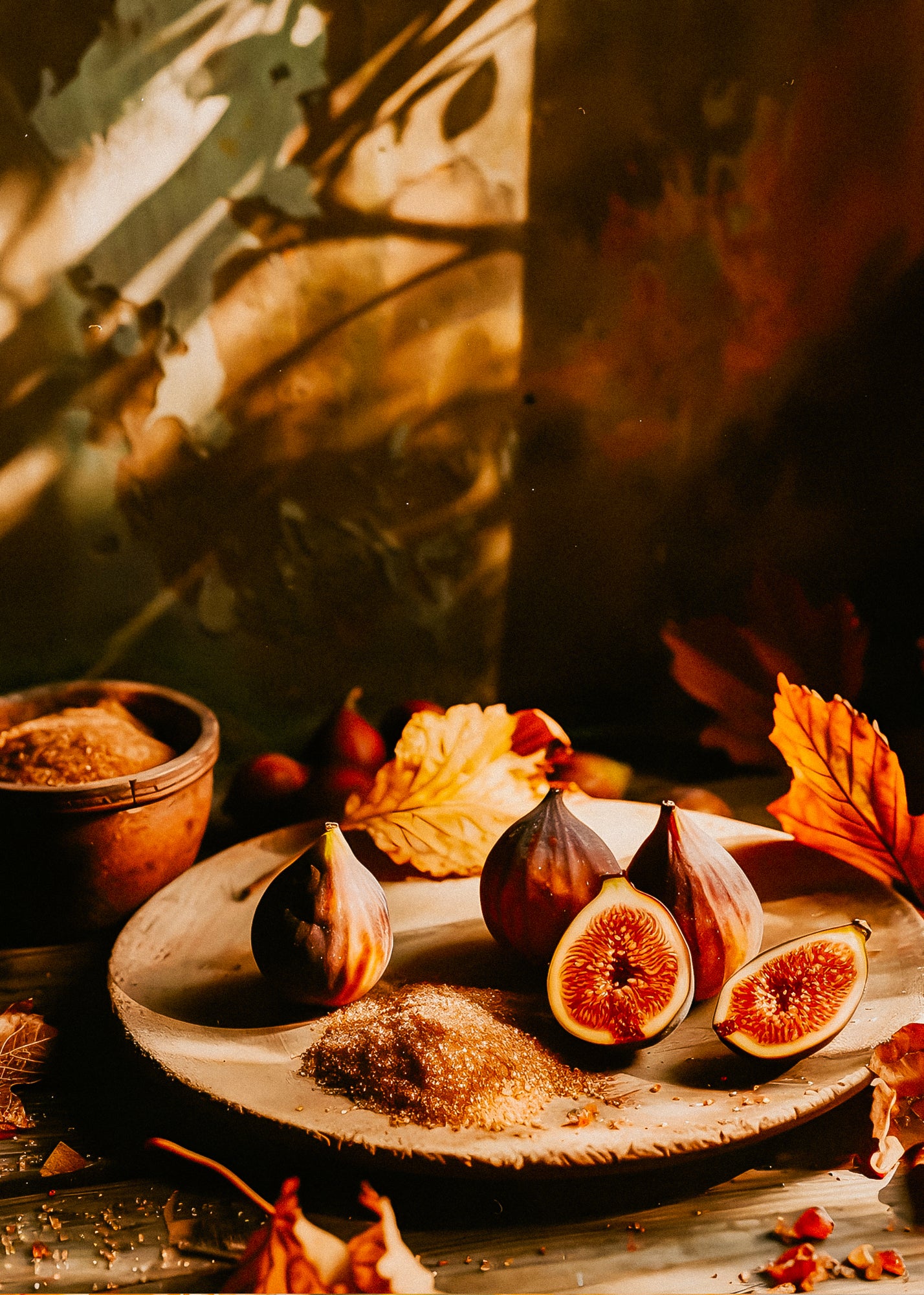As you pause beneath the branches, you peel open a fig, its jewel-toned center glistening with syrup. The sweetness is decadent—honeyed and full—balanced by the grounding warmth of brown sugar and maple. It clings to the air like the last heat of afternoon, rich and golden, and you can almost feel the stickiness on your fingertips.