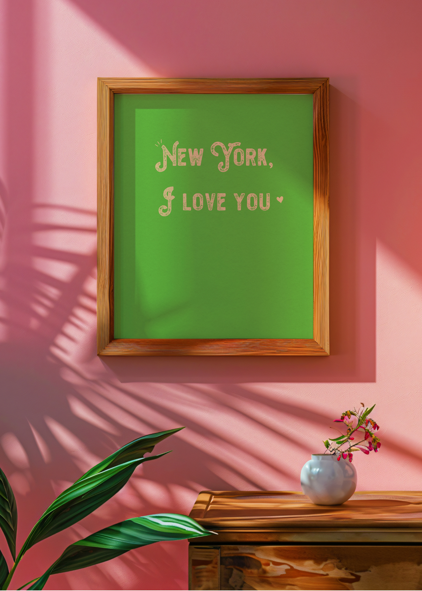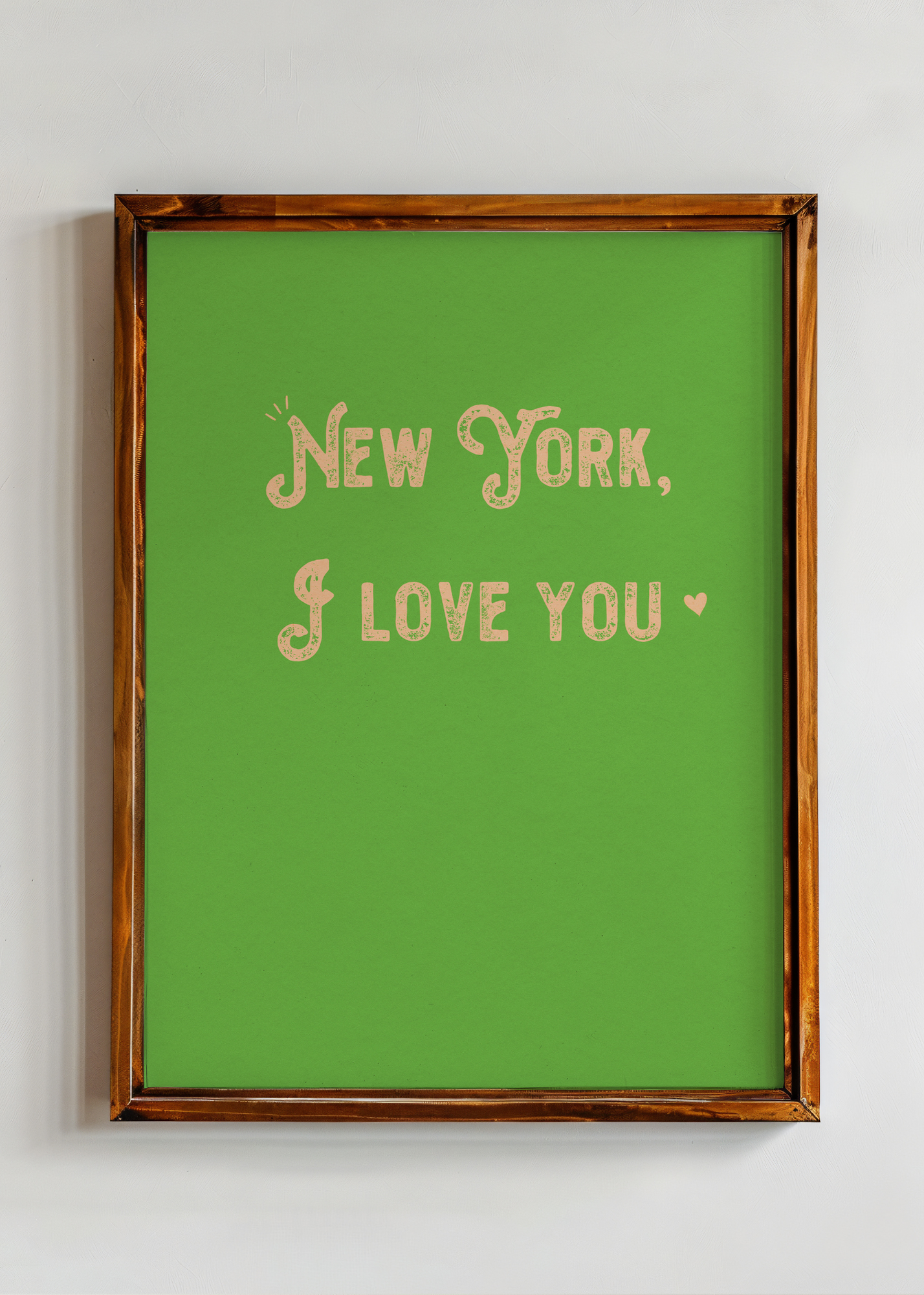NY I Love You— A juicy green background holds this playful proclamation: “New York, I love you”, finished with a sweet little heart. It’s a love letter to yellow taxis, late-night pizza, and the electric hum of city streets. Bold and a little sentimental, just like the city itself.