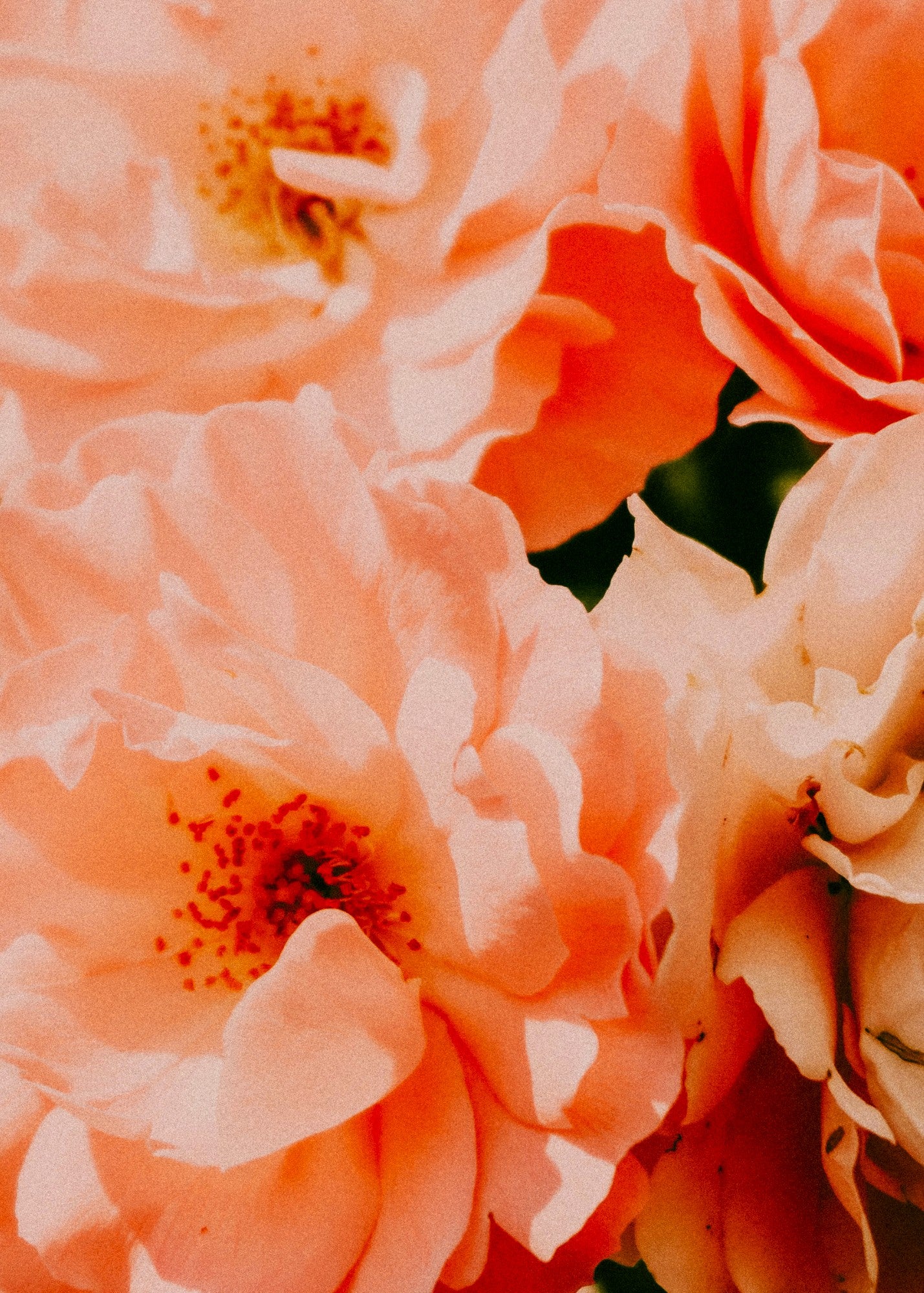 Hints of green flutter at the edges, like freshly unfurled leaves or the memory of crisp spring air. Everything feels alive, wrapped in light and newness. There’s the whisper of amber in the distance, grounding the florals with the softest golden warmth, like sun-drenched skin after a long walk through nature’s bloom.