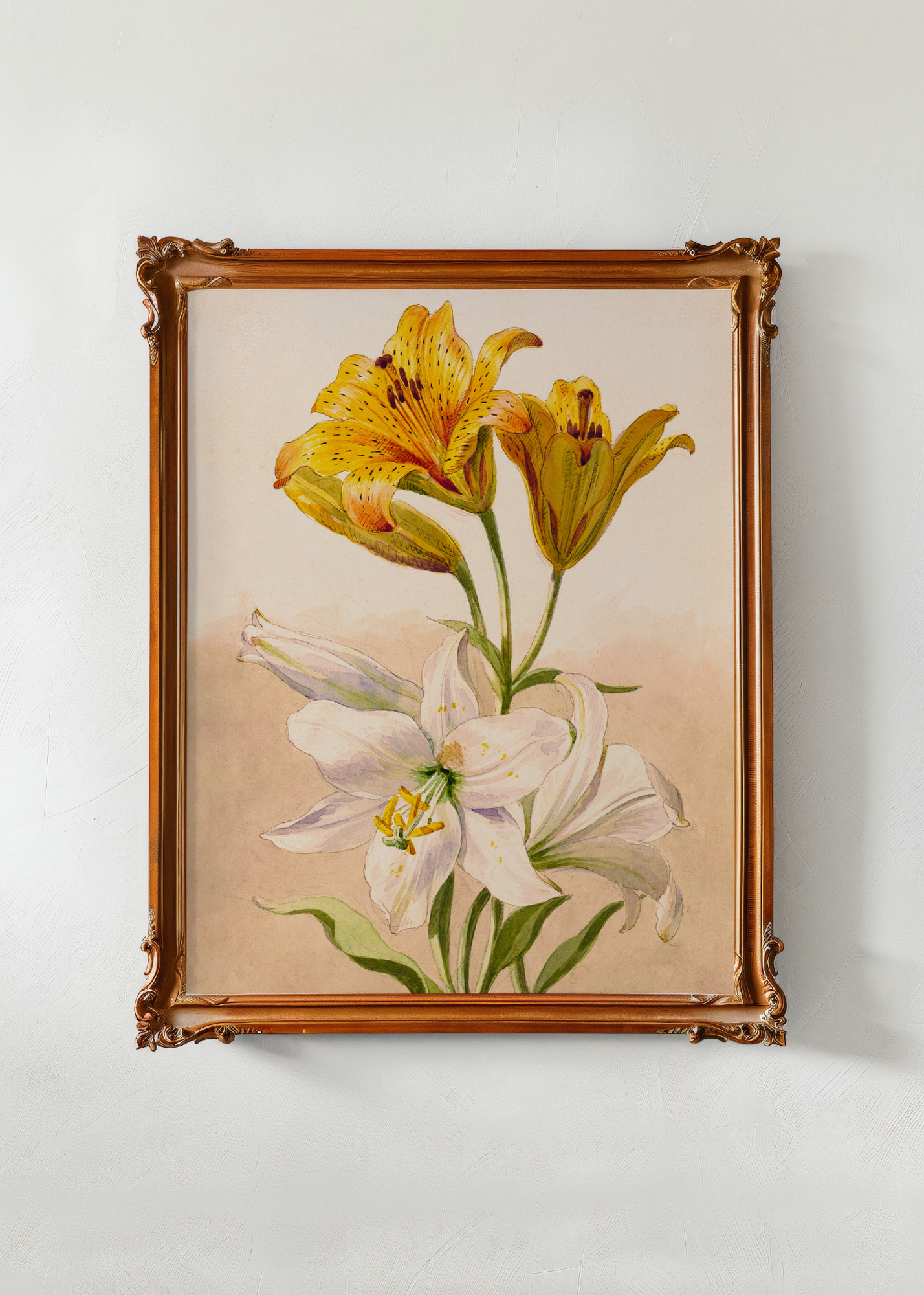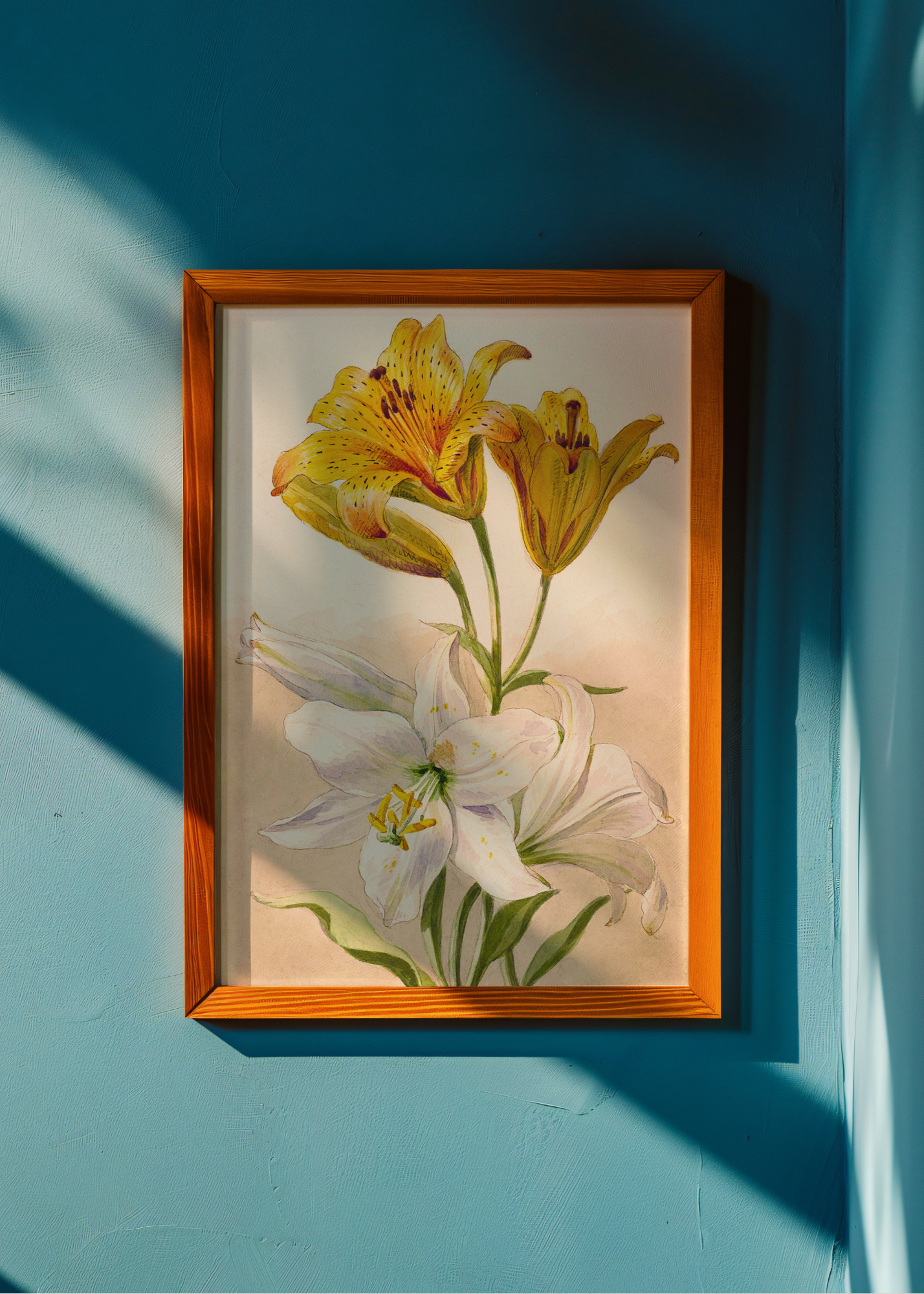 Yellow and White Lilies— Graceful and luminous, these yellow and white lilies bloom with quiet elegance under Willem van Leen’s thoughtful eye. Each petal unfurls like a sigh— soft, serene, and gently touched by light. There’s a hushed reverence in the composition, as if time slows to admire their fleeting bloom. A tender homage to nature’s grace, this piece invites calm, contemplation, and the kind of beauty that lingers gently in the soul.
