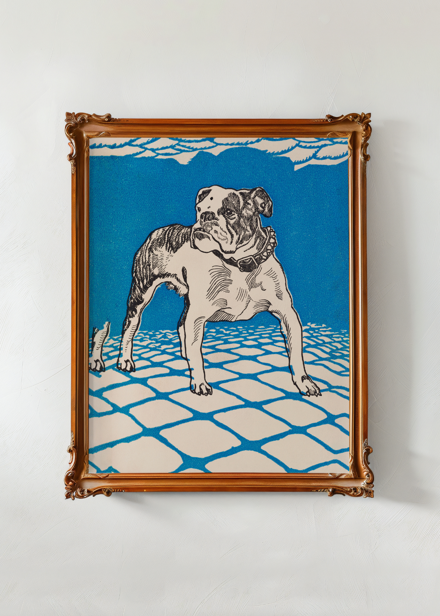 Bulldog— Sturdy and full of quiet charm, Bulldog by Moriz Jung (1912) captures the solid presence and unmistakable personality of this beloved creature. With bold lines and stylized form, the print walks the line between strength and affection—both humorous and endearing. There's a warmth in the weight of its stance, a loyalty in the tilt of its head, as if frozen mid-thought. A playful yet grounded piece, full of character and charm.