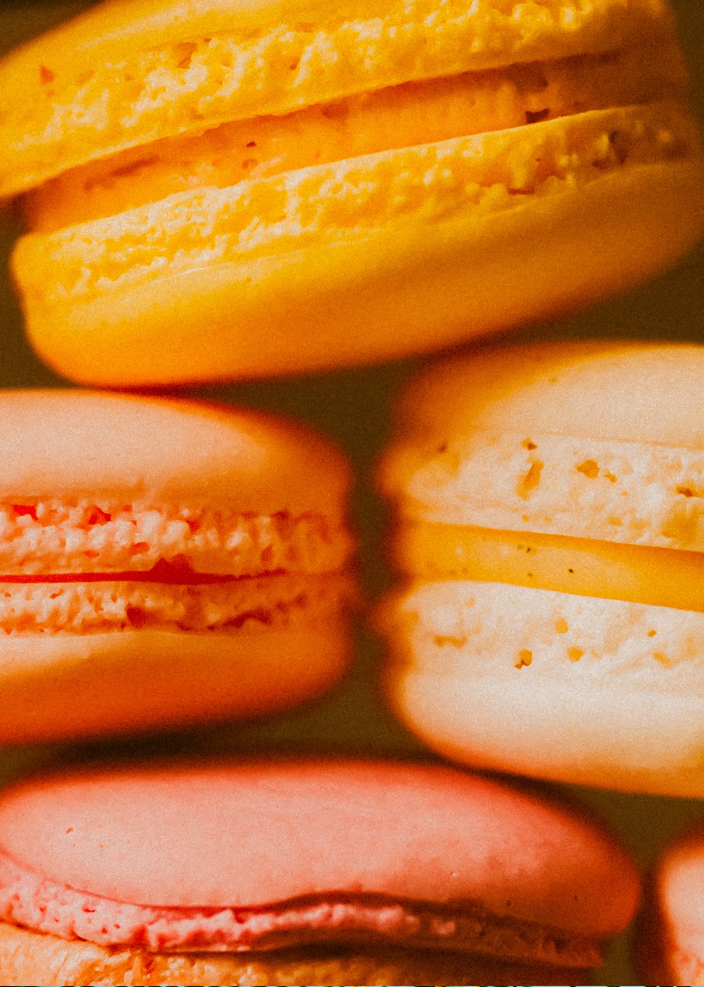 Afternoon sunlight filters through the tall windows of a quiet patisserie, casting golden streaks across marble counters lined with delicate confections. The soft clink of porcelain and the low murmur of conversation drift in the background, but the moment belongs to the scent—sweet, warm, and impossibly soft.