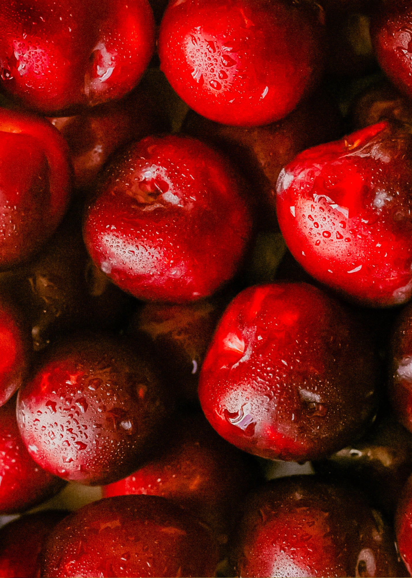 Beneath the cherries comes a layer of sun-ripened strawberries, their sugar-sweet scent adding brightness and playfulness to the richness above. It’s the kind of sweetness that clings to your fingers and your memory—ripe, red, and filled with sunshine.